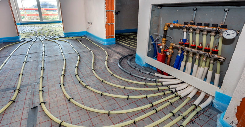 - Трубы: Изготавливаются из полимерных материалов (например, сшитого полиэтилена PEX) и укладываются в стяжку пола.